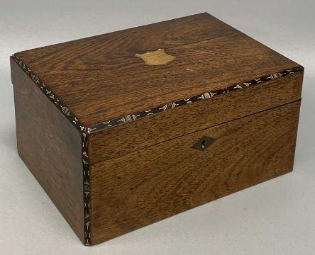 VICTORIAN ROSEWOOD SEWING BOX, hinged cover enclosing interior with fitted lift-out tray and various accessories, 28.5cms (w)Provenance: private collection Denbighshire