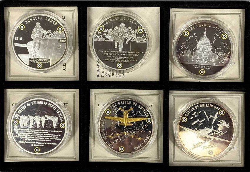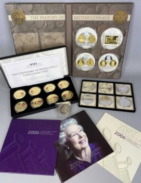 WINDSOR MINT BOXED SET OF TWELVE PROOF COINS, The Presidents of the USA and CASED PROOF COIN SETS, The History of British Coinage, Battle of Britain, Jubilee Mint Remembrance Crowns and 2006 Queen Elizabeth 80th Birthday CrownProvenance: private collection Denbighshire