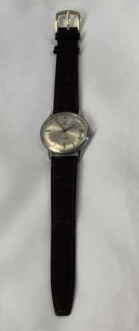 ROIDOR WHITE METAL GENTLEMEN'S WRISTWATCH having silvered dial with baton hour markers, leather strapProvenance: deceased estate Flintshire
