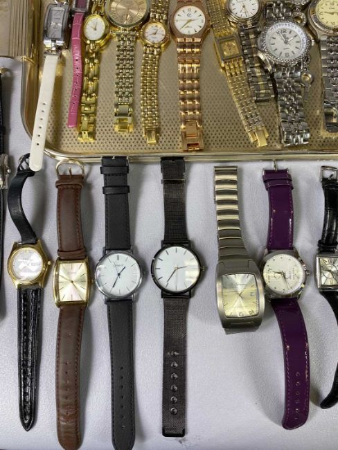 LADIES' & GENT'S QUARTZ MOVEMENT FASHION WATCHES including gold tone and stainless steel bracelet types, others with regular and colourful leather straps, boxed example including a ladies' Sekonda stainless steel with mother of pearl dial, ladies stainless steel Storm, other brands include Phillip Mercier, Limit, Sekonda, Geneve and others including some spurious, approximately 40 watches totalProvenance: private collection Gwynedd