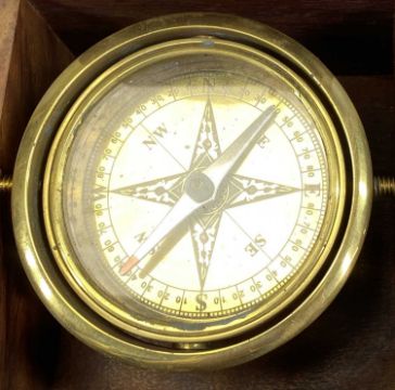 MARINE INSTRUMENTS, including reproduction brass cased ship's compass mounted on gimbal in brass bound hardwood box with brass anchor to the hinged cover, 8 (h) x 10.5 (w) x 10.5cms (d), reproduction brass cased desk clock, mounted on gimbal, 19cms (h), ships type clock and tide gauge mounted on wooden shield, vintage airplane type pinnacle compass, 7cms (diam), etc.Provenance: private collection Conwy