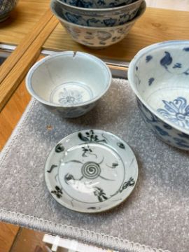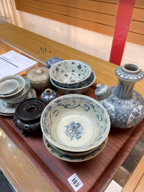 ASSORTED PROVINCIAL CHINESE & SOUTHEAST ASIAN PORCELAIN, including a kendi, five bowls 15cms diam., two jars and covers, jarlet, etc.Provenance: deceased estate Pembrokeshire.Comments: chips and cracks throughout, one bowl damaged rim, inspection advised.