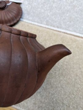 LARGE CHINESE YIXING TEAPOT & COVER, of lobed 'melon' form, 23cms (w)Provenance: consigned from CardiffComment: good, unmarked.