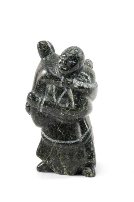 MARY OSHUTSIAQ, green steatite - Mother & Twins, signed in syllabics, Cape Dorset, 2009, 12cms (h)Provenance: Narwhal Gallery; private collection Colwyn BayComments: excellent