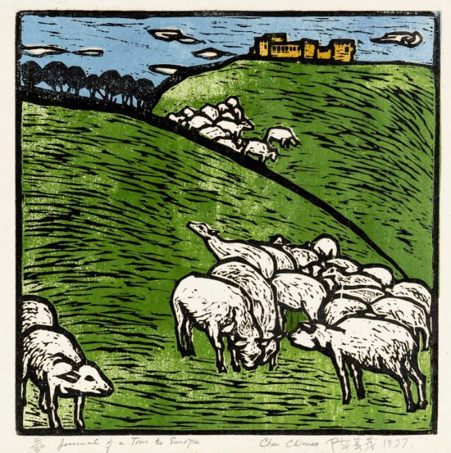 CHEN CHI-MAO 陳其茂 (Taiwan, 1923-2005) three limited edition linocuts - all titled 'Journal of a Tour of Europe', Castle, Sheep on a hillside, Mediterranean street scene wtih figures, signed, dated 1977, and numbered (2/30, 4/30, 2/30) in pencil, 30 x 30cms (3)Provenance: consigned on behalf of a charity.Comments: unframed, minor tinting.