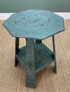 SELECTION OF REPRODUCTION FURNITURE including Spanish style three drawer side table on metal frame, 84 (h) x 120 (w) x 46cmd (d), Arts & Crafts style painted octagonal occasional table, 67 (h) x 50 (w), pine TV cabinet, 59 (h) x 106 (w) x 46 cms (d) (3)Provenance: private collection Vale of GlamorganComments: ordinary used condition, inspection advised