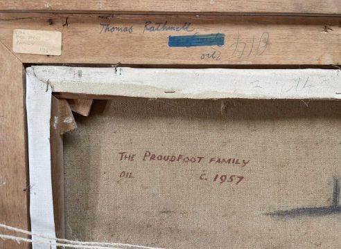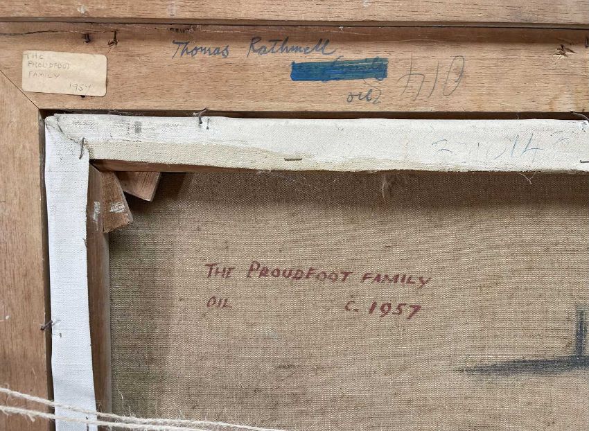 ‡ THOMAS RATHMELL (1912-1990) oil on canvas - entitled verso, 'The Proudfoot Family', signed, dated verso 1957, 50 x 60cmsProvenance: private collection CardiffComments: framed, ready to hang