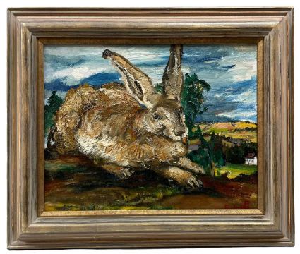 ‡ PETER ARNOLD oil on board - town scene with river and bridge, signed and dated '86, 34 x 44cms, figures at a market, signed, 54 x 74cms and a portrait of a rabbit, signed, 36 x 46cms (3)Provenance: direct from the artist studio, deceased estateComments: framed, ready to hang