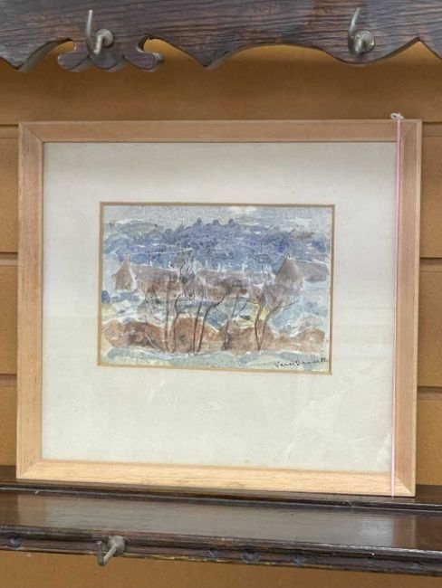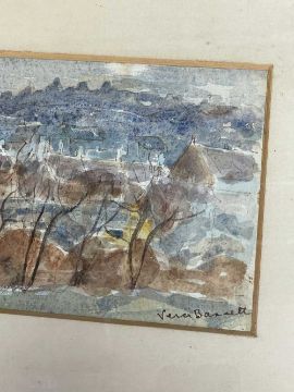 ‡ VERA BASSETT (Welsh, 1912-1997) watercolour - Ty Groes near Ammanford, signed, inscribed verso and dated 1967, 12 x 17.5cmsProvenance: private collection CardiffComments: slightly faded, 1964 Vera Bassett Turner House Exhibition leaflet verso (picture not apparently listed), framed ready to hang