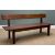 MID-CENTURY TEAK REFECTORY TABLE & BENCHES, large two-plank table top raised on platform end supports with trestle legs united by a low stretcher, 73 (h) x 229 (w) x 82cms (d), together with a pair of matching benches with full-length loose, grey-fleck cloth upholstered cushions (3)Provenance: consigned via CardiffComments: table top with dark stain, some bumps and light scratches but overall very good, inspection advised