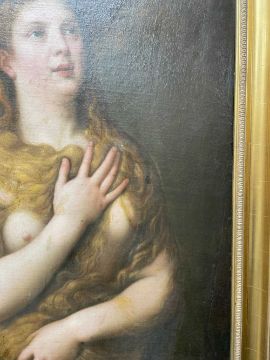 AFTER TITIAN oil on canvas - The Penitent Magdelene, 92 x 71.5cmsProvenance: private collection CardiffComments: overpainting and canvas repairs, inspection advised. Condition Report: There are areas of restoration and paint craquelure.Nothing verso