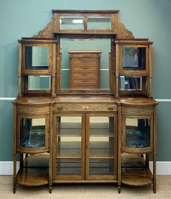 EDWARDIAN ROSEWOOD MIRROR BACK PARLOUR CABINET, with Renaissance style marquetry decoration, shelves and glazed doors, 215 (h) x 168 (w) x 45cms (d)Provenance: private collection GwentComments: faded, cornice loose