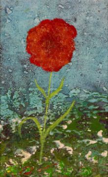 ‡ PAUL PETER PIECH (American, lived / worked Wales 1920-1996) rare oil on board - single red flower, possibly poppy, 15.5 x 10cmsProvenance: private collection Vale of GlamorganComments: framed, ready to hang