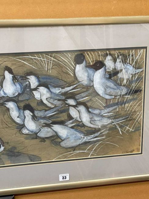‡ CHARLES FREDERICK TUNNICLIFFE RA OBE (English, worked Wales 1901-1979) mixed media - terns amongst grasses, signed in pencil lower right, 33.5 x 51.5cmsProvenance: private collection GwyneddComments: framed and glazed, ready to hang Condition Report:Studio stamp verso dated 1980, No.349