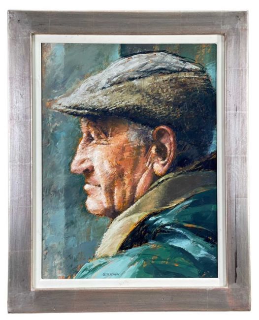 ‡ KEITH BOWEN (Welsh b.1950) oil on board - entitled verso, 'Shepherd Head, Study Four', signed, 49 x 37cmsProvenance: private collection Cumbria, purchased at exhibition of Bowen's work in Penrith, Cumbria, the portrait was painted when the artist was working on illustrations for 'Ivver Sen' by Keith RichardsonComments: framed, ready to hang