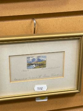 WARREN WILLIAMS (Welsh 1863-1918) two miniature watercolours - entitled 'Conwy Castle' and 'Snowdon', each inscribed 'Facsimilie of the Picture in the Queens Dolls House', signed, 2.5 x 4cms (2)Provenance: private collection Conwy, according to the Royal Collection Trust, similar watercolour(s) were commissioned for the Library in Queen Mary's Dolls HouseComments: framed, glazed, ready to hang