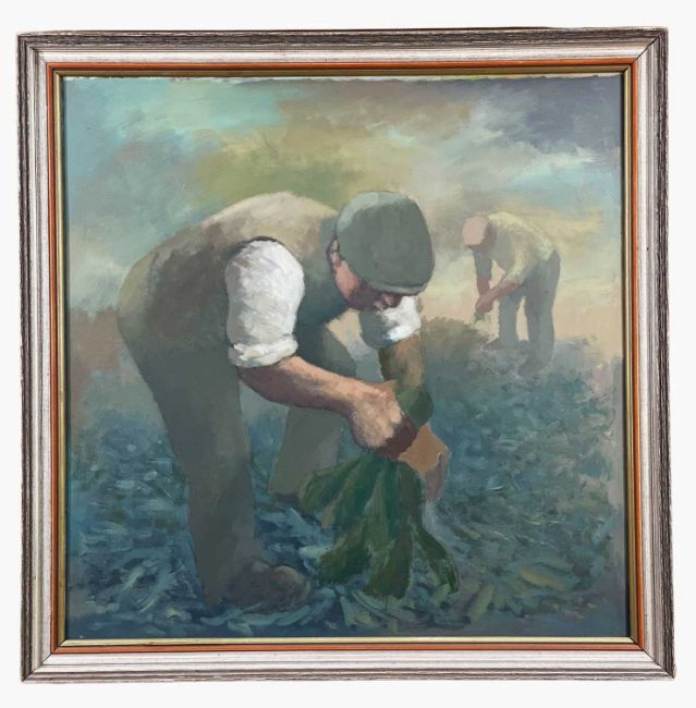 ‡ ANEURIN JONES (Welsh 1930-2017) oil on board - entitled verso, 'Codi Maip / Pick Up a Turnip', signed verso, 60 x 60cmsProvenance: private collection GwyneddComments: framed, ready to hangFree Delivery: bidders with invoices over £4000 in this Welsh Sale can benefit from free insured delivery to their home (England and Wales only). To enquire about this service, please email brj@rjauctions.co.uk