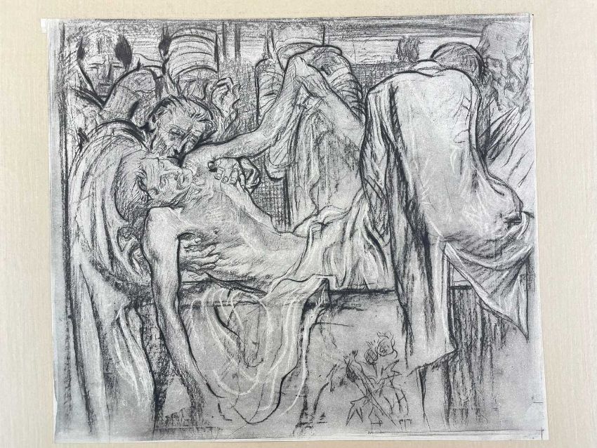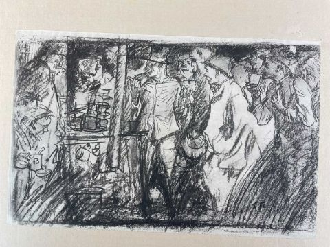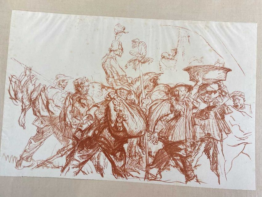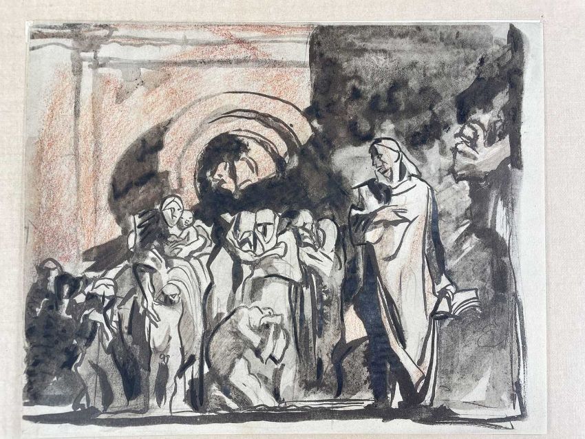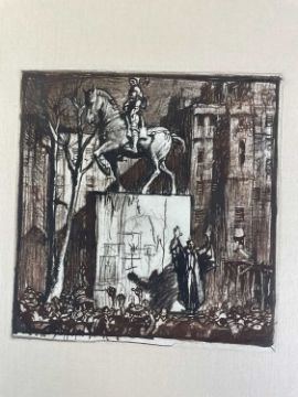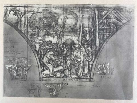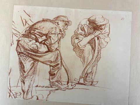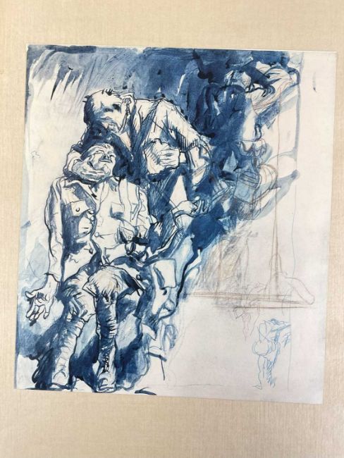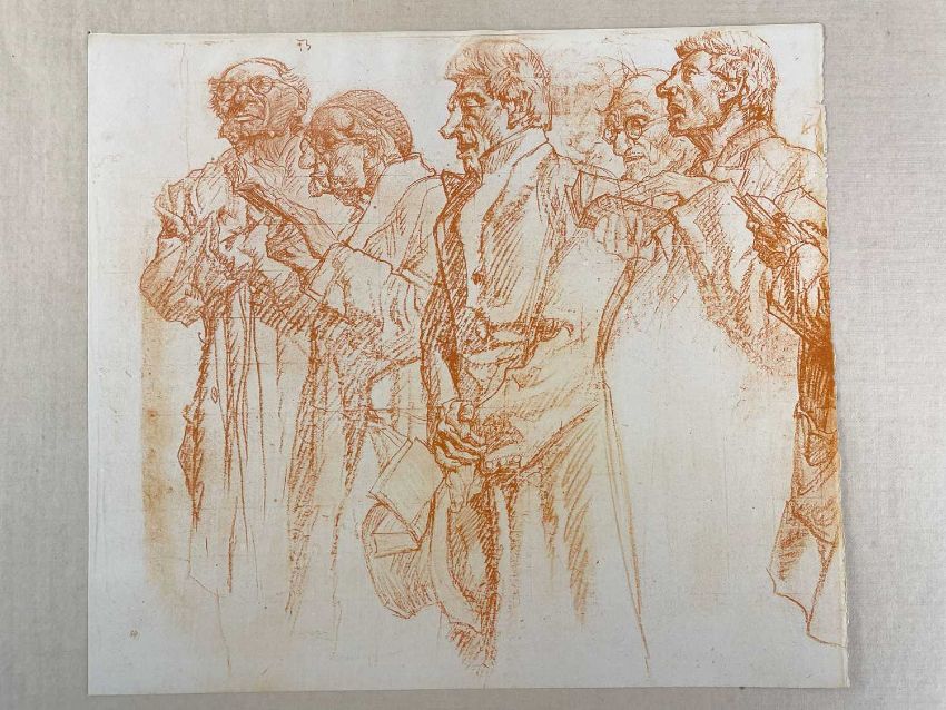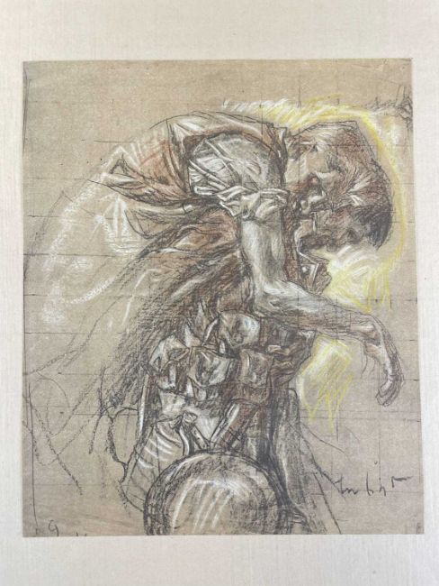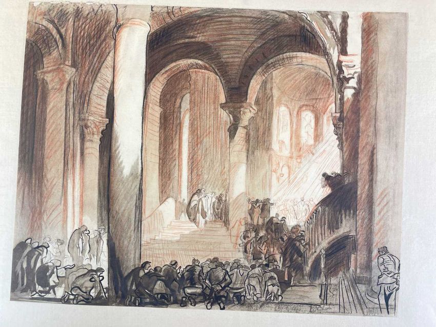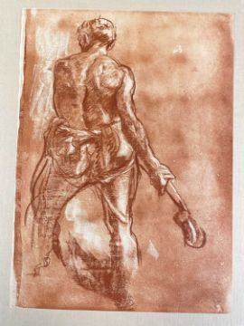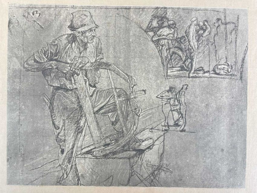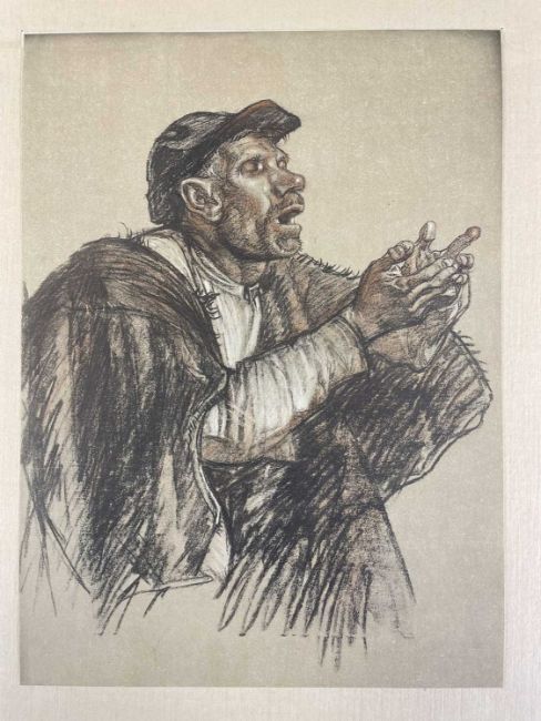 SIR FRANK BRANGWYN RA HRSA RSW RWS PRBA RE HRMS ROI (Welsh 1867-1956) The Brangwyn Portfolio of lithographs, 1927, published by E F d'Alignan and Paul Turpin, to include 'Two Wounded Soldiers', 'Two Men Leaning on Their Adze', 'Blind Beggar', 'Two Indians Leaning on Poles', 'Sketch of St. John', etc., various sizes mounted on card (contained in an original portfolio), smallest 28 x 28cms to largest 45 x 28cms (38)Provenance: private collection SwanseaComments: folio case with tears to spine, and upper left margin to cover, one with auction label, one with scuffs to upper margin, incomplete, inspection advised, all prints photographed