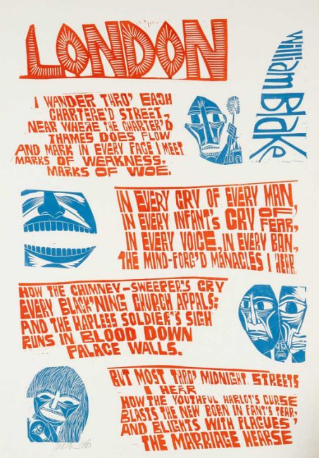 ‡ PAUL PETER PIECH (American, lived / worked Wales 1920-1996) two colour lithograph - 'London' by William Blake, signed and dated 1980, 64 x 45cmsProvenance: private collection OxfordshireComments: unframed, light creasing, no rips or tears