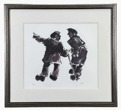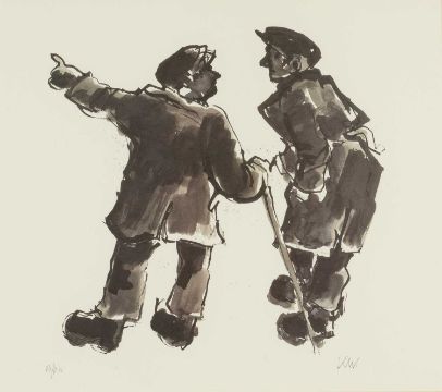 ‡ SIR KYFFIN WILLIAMS RA (Welsh 1918-2006) limited edition (artist proof) lithograph - two farmers talking, signed with initials, 42 x 49cmsProvenance: private collection GwyneddComments: framed and glazed, ready to hang