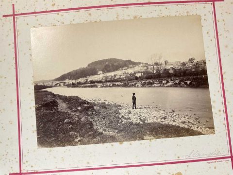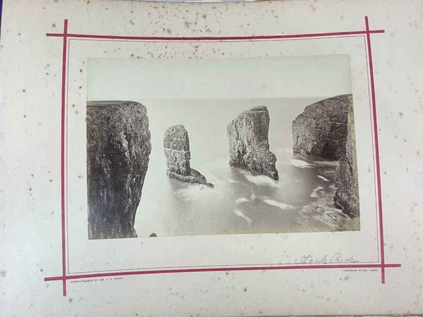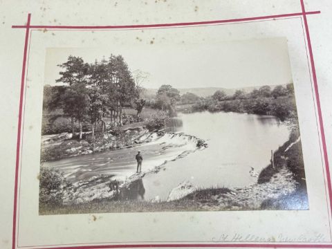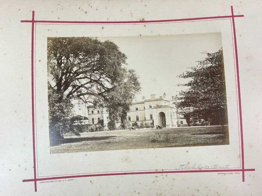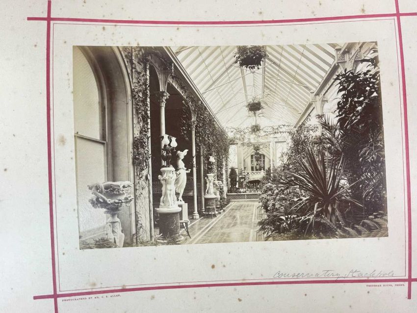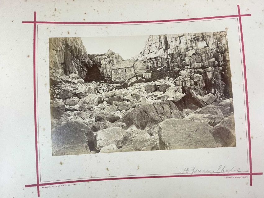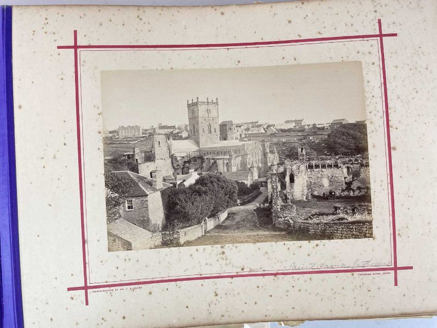 CHARLES SMITH ALLEN (1831-1897) of Tenby, documentary photographs, circa 1860s - rare album having gilt decoration and title to brass clasped red Morocco 'Photographs in South Wales', contains fifty pages of mounted photographs showing scenes and great houses in south Wales and a final photograph of Welsh costume, each with titles inscribed in pencilAuctioneer's Note: Smith Allen was a pioneer photographer in Wales and renowned as the finest of Tenby's early camera artists. Born in Rugeley, Staffordshire, in 1831, a few surviving paper negatives show that he was recording Tenby in silver towards the end of the 1840s. He set up business in Tenby, buying the old Assembly Rooms and building his 'Excelsior Studios' on to it. This had a fully equipped darkroom as well as a complex system of shutters and blinds which controlled the level of daylight that entered the studio. He often took photographs 'on location', having built himself a portable, horse-drawn darkroom. He also had a shop and studio, 'The Mortimer Studio', in Tredegar House, High Street, dealing in stationery, as well as a studio in Priory Street, Cardigan. Allen photographed all over Wales and this album is one of many produced by him for individual customers.Provenance: consigned by Gregynog Trust (surplus to requirements as unconnected to the heritage of Gregynog Hall)Comments: foxing to mounts but photographs generally clear of foxing and in good overall condition