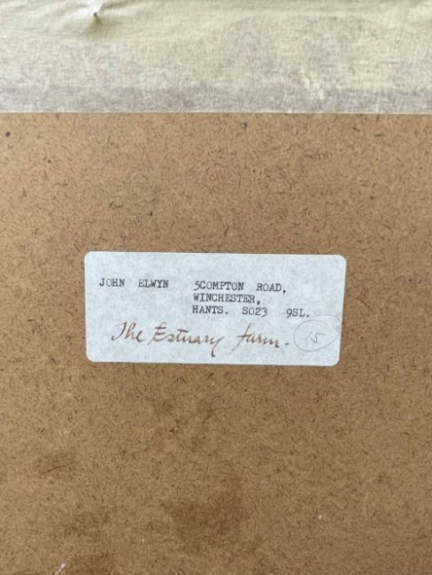 ‡ JOHN ELWYN (Welsh 1916-1997) gouache - entitled verso, 'The Estuary Farm' on artist's address label, 32 x 45cmsProvenance: deceased estate, CarmarthenshireComments: framed and glazed, ready to hangFree Delivery: bidders with invoices over £4000 in this Welsh Sale can benefit from free insured delivery to their home (England and Wales only). To enquire about this service, please email brj@rjauctions.co.uk
