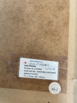 ‡ JOSEF HERMAN (Polish, lived Wales 1911-2000) mixed media - colourful study of figure on mule, signed verso, 19.5 x 25cmsProvenance: private collection LondonComments: framed and glazedFree Delivery: bidders with invoices over £4000 in this Welsh Sale can benefit from free insured delivery to their home (England and Wales only). To enquire about this service, please email brj@rjauctions.co.uk