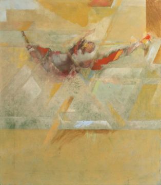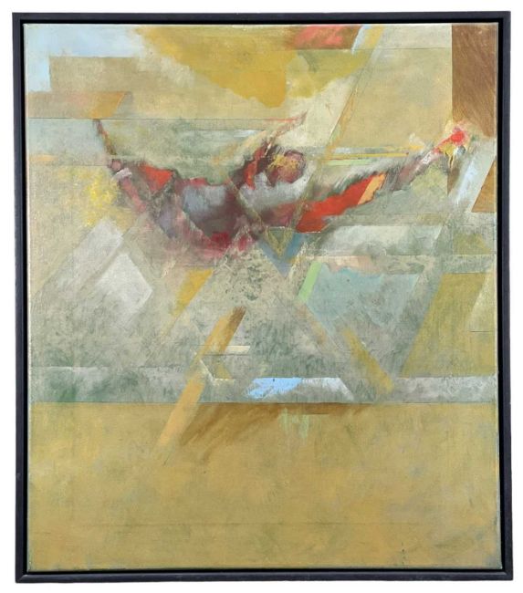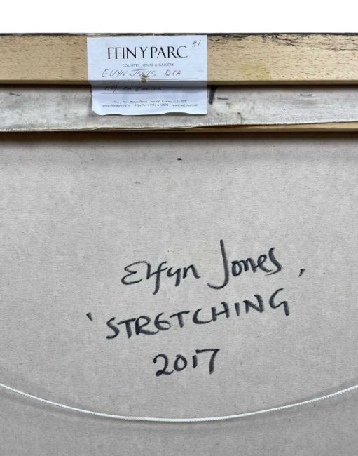 ‡ ELFYN JONES (Welsh b.1939) oil on canvas - entitled verso, 'Stretching' on Ffin Y Parc Gallery label, signed and dated verso 2017, 75 x 64cmsProvenance: private collection ConwyComments: framed, ready to hang