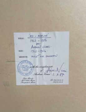 ‡ ANDREW VICARI (Welsh 1932-2016) oil on board - entitled verso 'Ad-avalon', signed verso with Monaco address label, 57 x 53cmsProvenance: private collection London, friend and business associate of the artistComments: framed