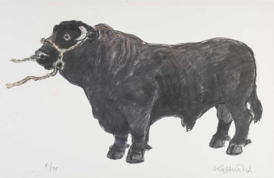 ‡ SIR KYFFIN WILLIAMS RA (Welsh 1918-2006) limited edition (51/75) print- 'Welsh Black Bull', signed, 40 x 61cmsProvenance: private collection GwyneddComments: framed and glazed, ready to hangFree Delivery: bidders with invoices over £4000 in this Welsh Sale can benefit from free insured delivery to their home (England and Wales only). To enquire about this service, please email brj@rjauctions.co.uk