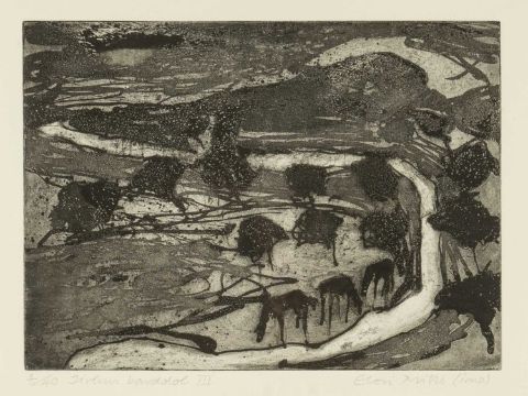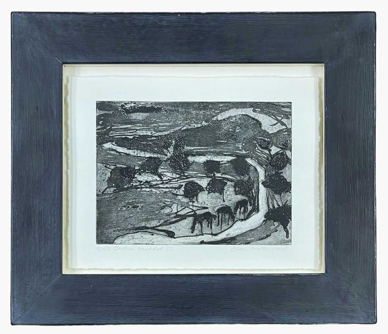 ‡ ELERI MILLS (Welsh b.1955) limited edition (4/40) etching - entitled 'Tirlun Barddol', (Bardic landscape), signed, 15 x 20cmsProvenance: private collection PowysComments: framed and glazed, ready to hang