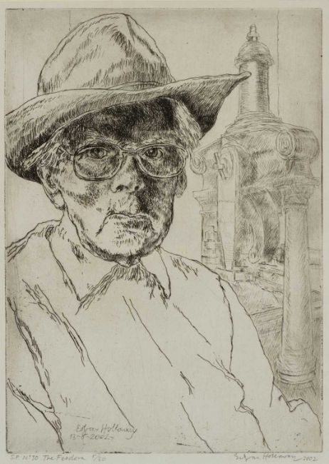 EDGAR HOLLOWAY (English, lived Wales 1914-2008) limited edition (5/30) etching - entitled verso, 'Self Portrait No.30, The Fedora', signed and dated 2002, 28 x 20cmsProvenance: private collection, consigned via our Mid-Wales officeComments: framed and glazed, ready to hang