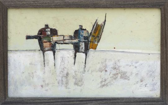 PETER OLIVER (English 1927-2006) oil on board - 'Men with Viviers 157', 43 x 74.5cmsProvenance: direct from artists' familyComments: recently framed
