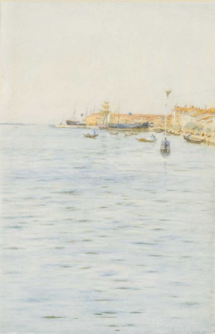 HELEN ALLINGHAM RWS (English 1848-1926) watercolour - looking towards the harbour, Venice, signed and dated 1901, gallery label verso, 29 x 19cmsProvenance: with Abbot & Holder; private collection LondonComment: framed glazed ready to hang