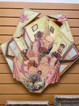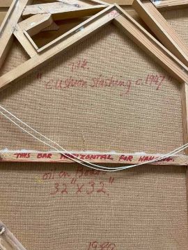‡ ANTHONY GREEN RA (English 1939-2023) oil on board - entitled verso, 'Cushion Slashing c.1947', signed and dated verso 1989, 82 x 83cmsProvenance: private collection Cardiff, with original purchase receipt from Mayor Rowan Gallery, London 1989Comments: framed, ready to hang