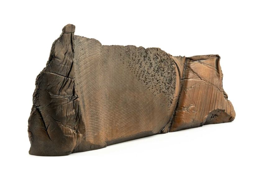 ‡ ALAN WATT (Australian b.1941) earthenware - glazed clay sculpture entitled, 'Ridge', signed and dated '97, 35cms in length, 13cms highProvenance: private collection Cardiff, with original purchase receipt, European Ceramics, Knaresborough, June 1998