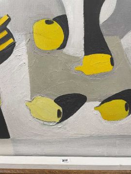 ‡ THEODORE MAJOR (English 1908-1999) oil on board - still life with fruit, signed verso, 75 x 93cmsProvenance: purchased directly from the artist, July 1993, private collection CardiffComments: framed, ready to hang Condition Report:surface dirt