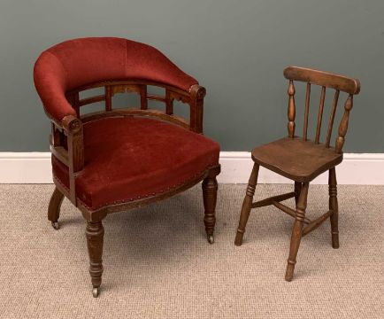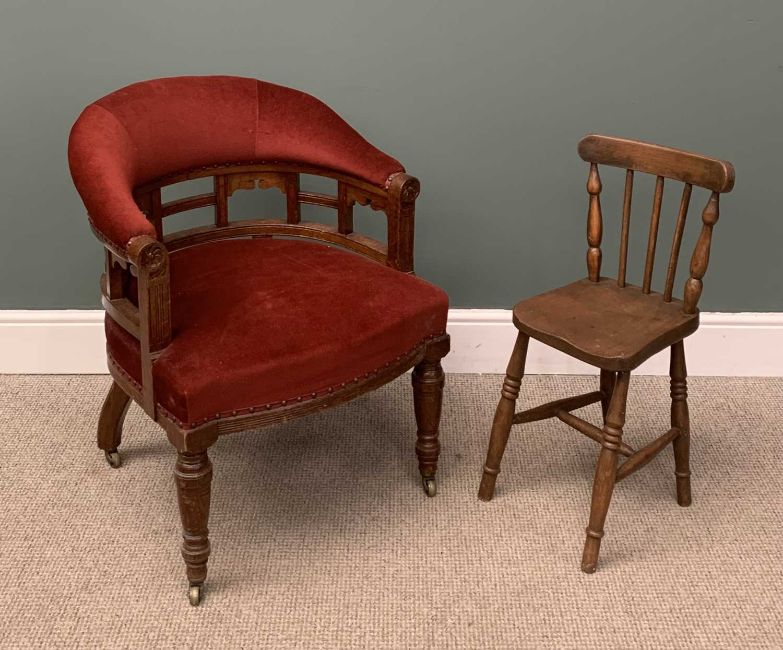 TWO SUNDRY CHAIRS comprising Edwardian oak upholstered tub-chair and infant's Windsor type chairProvenance: private collection Anglesey