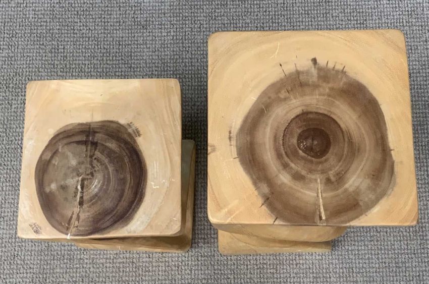 CONTEMPORARY LIGHTWOOD RUSTIC PLANTER STANDS (2), twist effect, labelled PLT, 70 (h) x 27.5 (w) x 27.5cms (d) the tallestProvenance: deceased estate Denbighshire