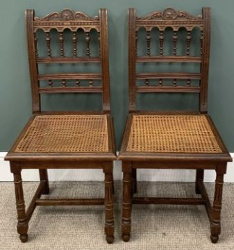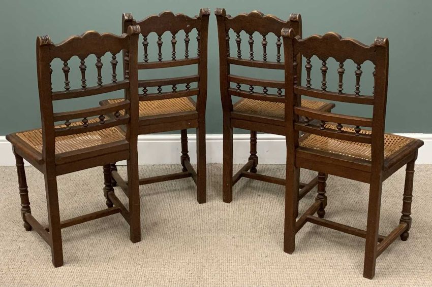VINTAGE OAK REFECTORY TABLE & FOUR CHAIRS, 73 (h) x 133 (w) x 78cms (d) and a set of four cane and carved chairsProvenance: private collection Anglesey
