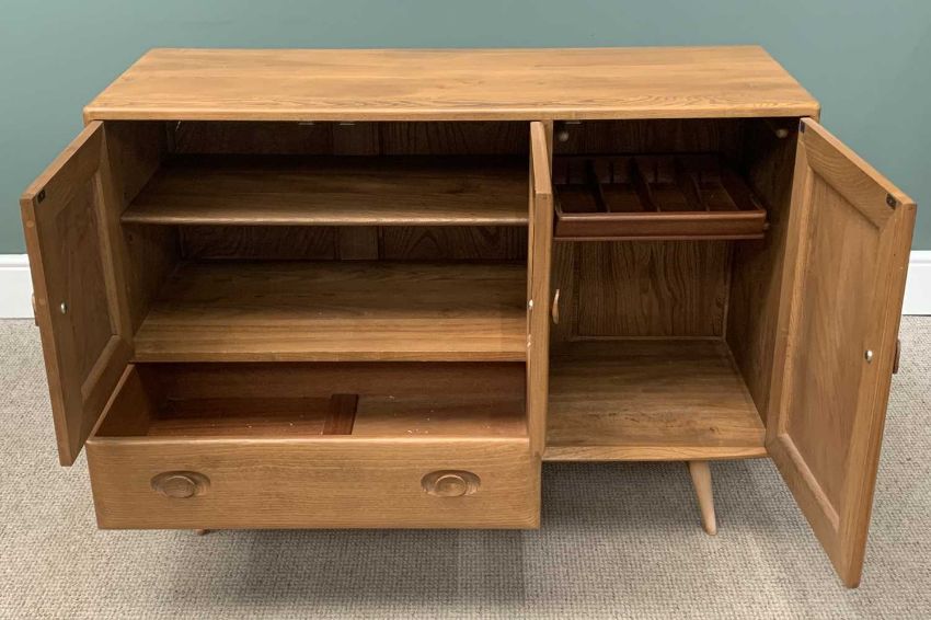 LIGHT ERCOL SIDEBOARD with base drawer, 81.5 (h) x 114 (w) x 44cms (d)Provenance: private collection Conwy