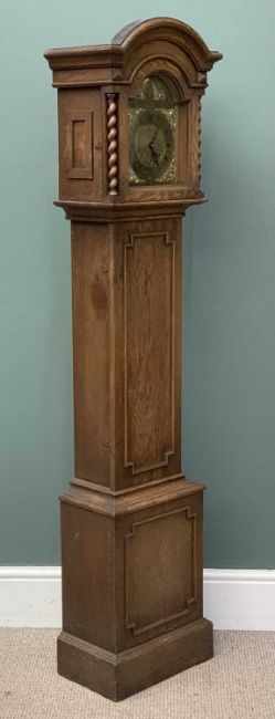 TEMPUS FUGIT BRASS FACED LONGCASE CLOCK, in oak case with Westminster Chime, 160 (h) x 37 (w) x 23cms (d)Provenance: private collection Conwy