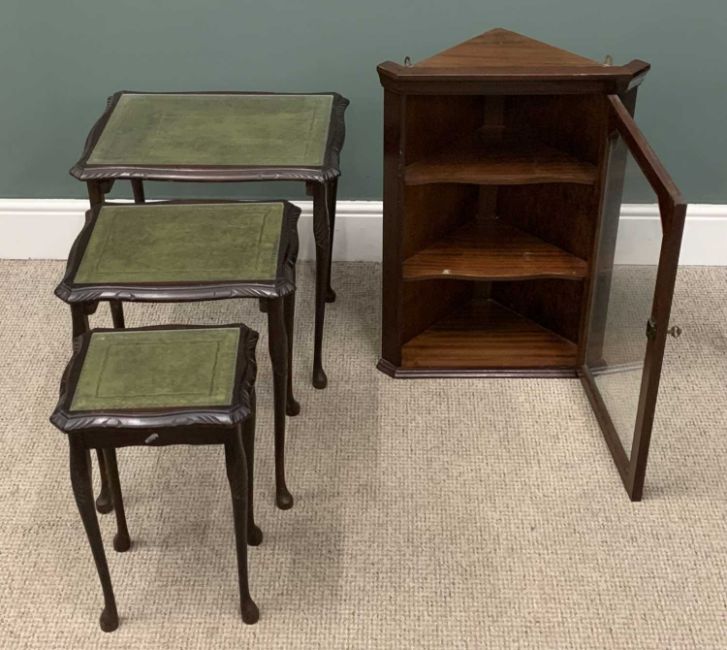 EIGHT ITEMS OF CLASSIC BRITISH FURNITURE to include wine tables, a compact breakfront sideboard, 84 (h) x 115 (w) x 38cms (d) etc.Provenance: private collection Conwy