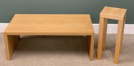 OFFERED WITH LOT 67 - GROUP OF MODERN FURNISHINGS including light oak refectory type table, 71 (h) x 152 (w) x 76cms (d), two other light wood effect tables and two modern standard lamps ET