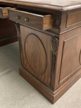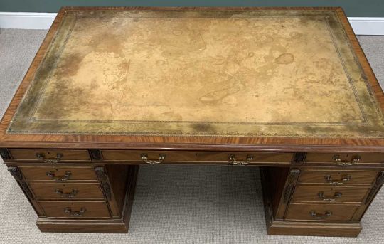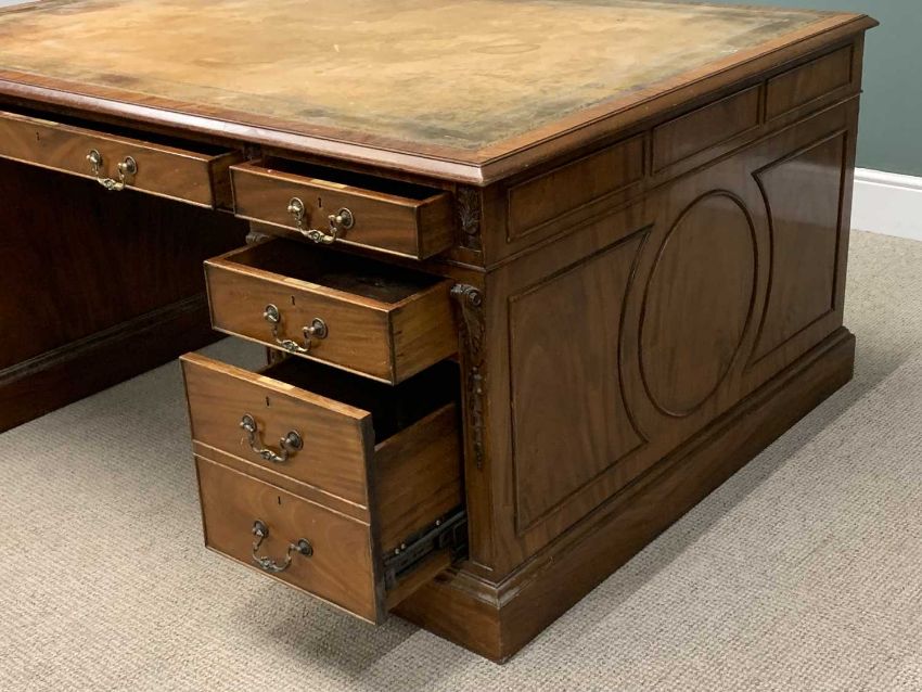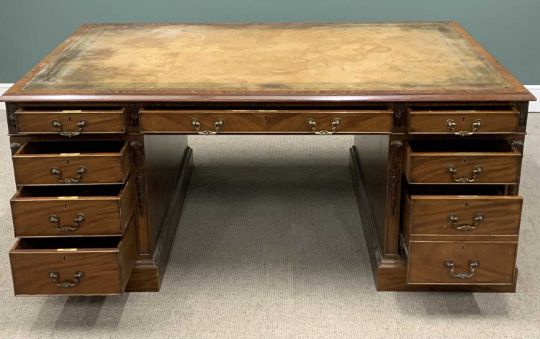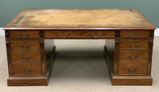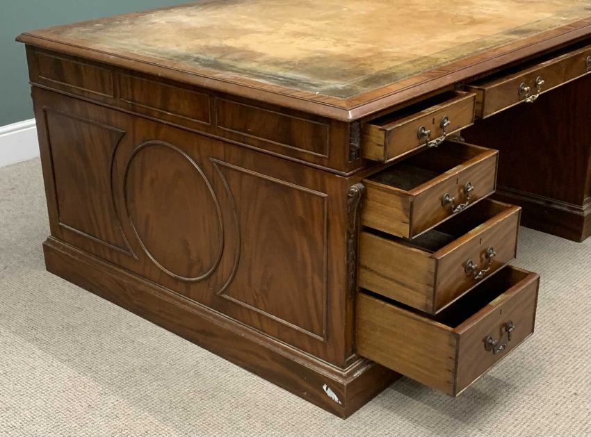 ANTIQUE STYLE PARTNER'S DESK, twin pedestal with opening drawers to front and cupboard doors to back, tooled top, 77 (h) x 184 (w) x 122cms (d)Provenance: private collection Conwy