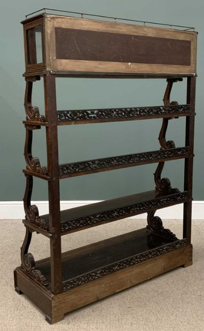 19TH CENTURY ROSEWOOD WATERFALL BOOKCASE with glazed door top shelf and fretwork rail backs, 151 (h) x 110 (w) x 43cms (d)Provenance: private collection Conwy