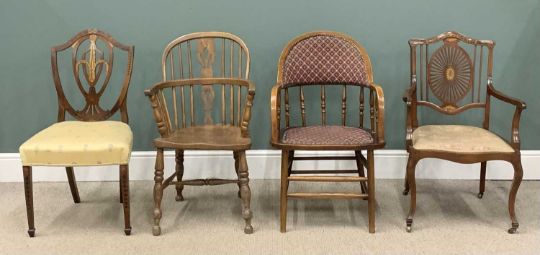 VARIOUS CHAIRS INCL. OAK/ELM COMB BACK WINDSOR CHAIR, 91 (h) x 54 (w) x 38cms (d) and three other antique chairs, various sizesProvenance: private collection Conwy