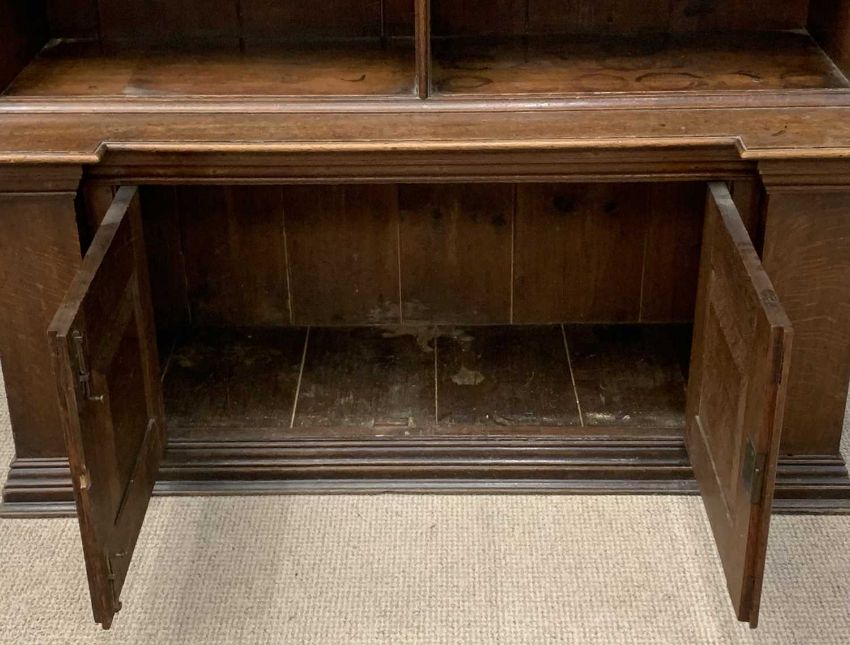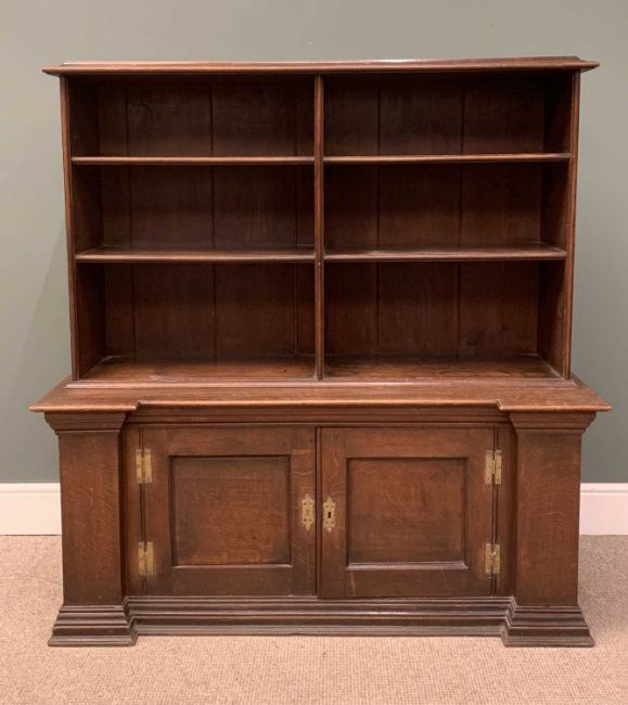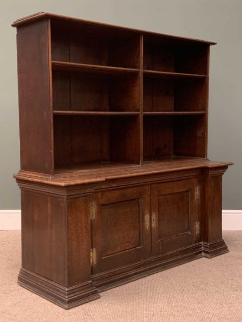 19TH CENTURY OAK BOOKCASE CUPBOARD with upper section of six shelves above base cupboard doors, 147 (h) x 141 (w) x 50cms (d)Provenance: private collection Conwy