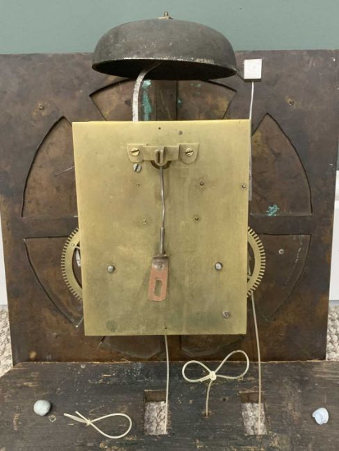 19TH CENTURY OAK LONGCASE CLOCK with eight-day bell strike movement, maker William Harley of Salop, brass dial with Roman numerals, twin weight and pendulum present, 207 (h) x 53 (w) x 25cms (d)Provenance: private collection Conwy