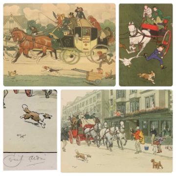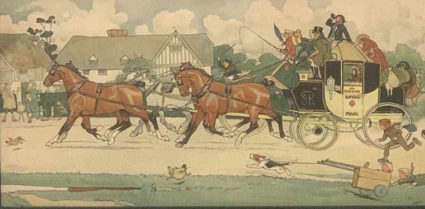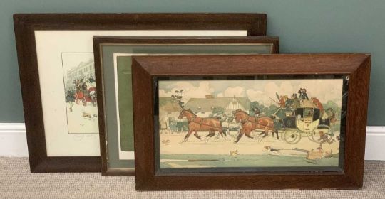 CECIL ALDIN (British 1870-1935) humorous coaching prints - 'Trouble Ahead', 47 x 55cms, Royal Mail carriage, 36 x 70cms and outside Mitre Hotel, signed in pencil, 56 x 80cmsProvenance: private collection Conwy